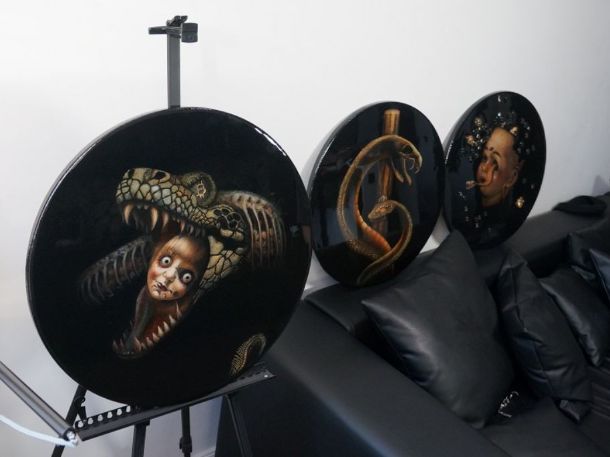 Материалы: холст(лён), акрил, поталь, гипс, эпоксидная смола