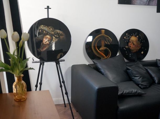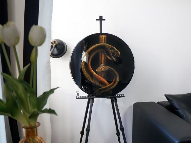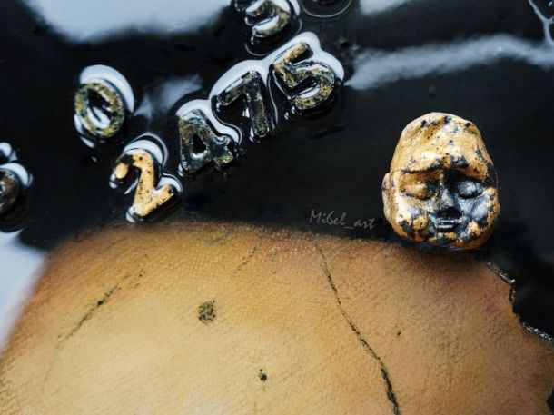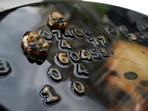 Материалы: холст(лён), акрил, поталь, эпоксидная смола
