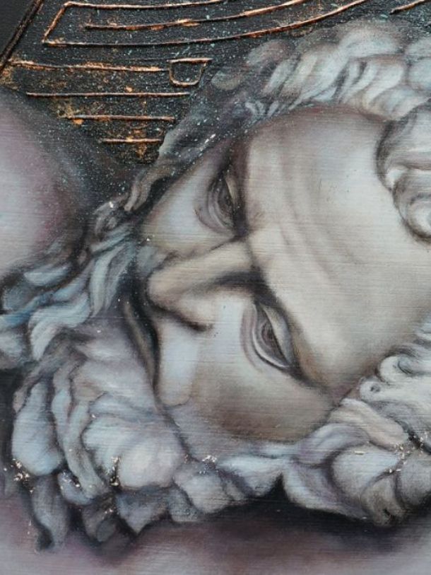 Материалы: холст(лён), акрил, поталь, текстурная паста