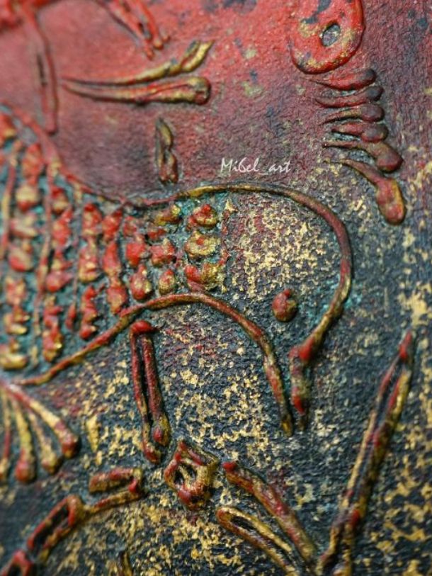 Материалы: холст(лён), акрил, поталь, текстурная паста
